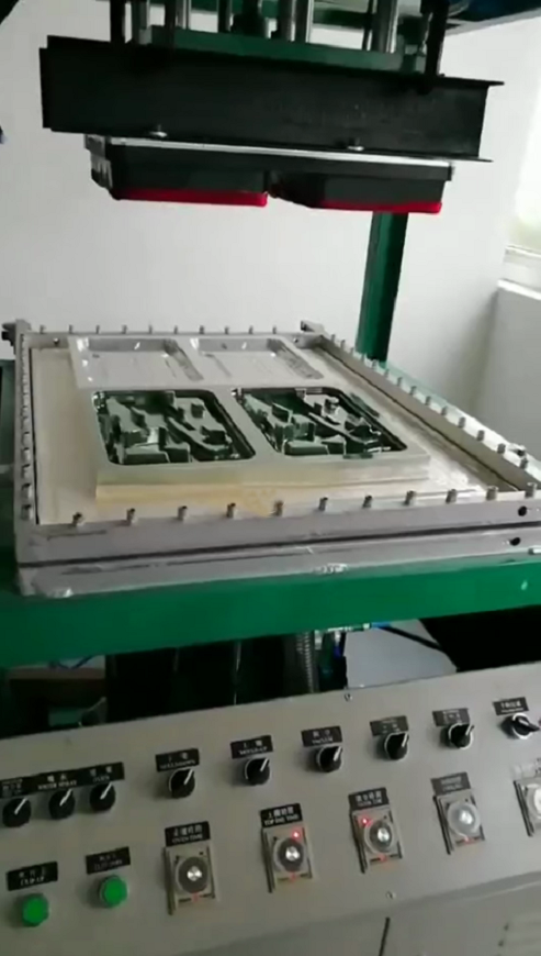 人工上料----壓料----加熱----防垂----加熱爐后退----下模具上升----真空成型----冷卻----脫模----下模具下降----壓料框上升(自動(dòng))----人工取料