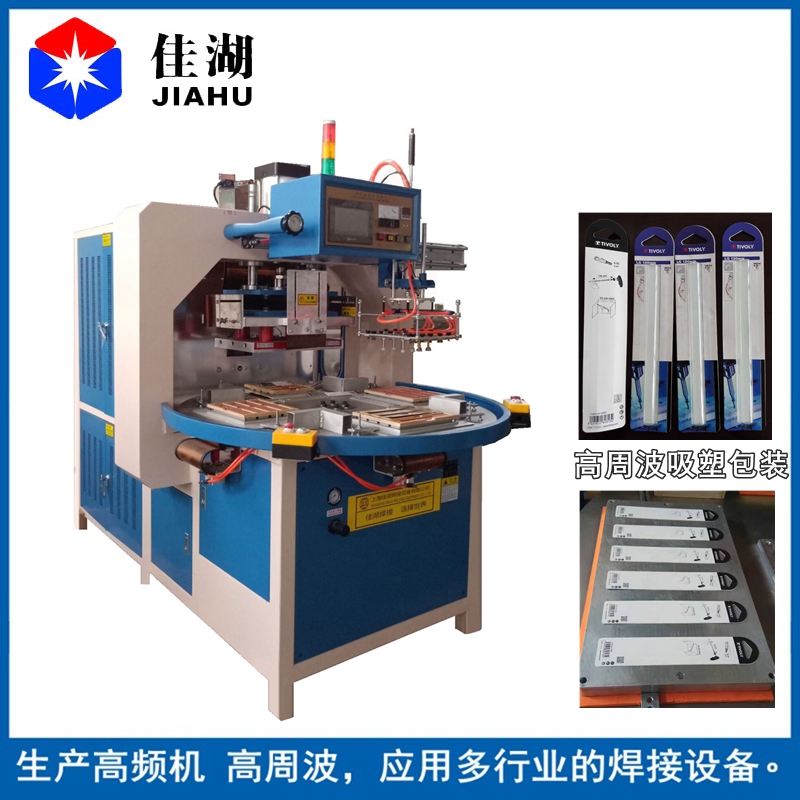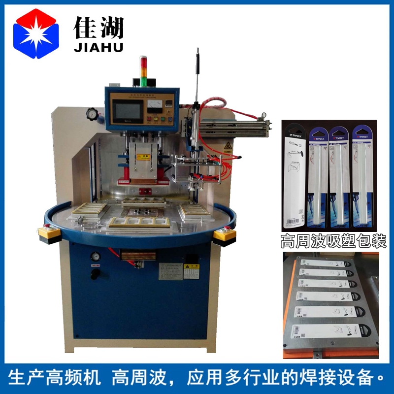 自動轉盤高頻機、高周波轉盤機、高頻熱合機,通常也稱為高頻機,高周波,吸塑包裝機、高周波熔接機、高周波熔接熔接機、高頻封邊機、高周波機、高周波熱合機、泡殼包裝機、高頻熱合包裝機、吸塑包裝機、高周波封口機、高頻包裝機、高周波包裝機、包裝機械等。自動自動轉盤式高頻機帶機械手取產品。