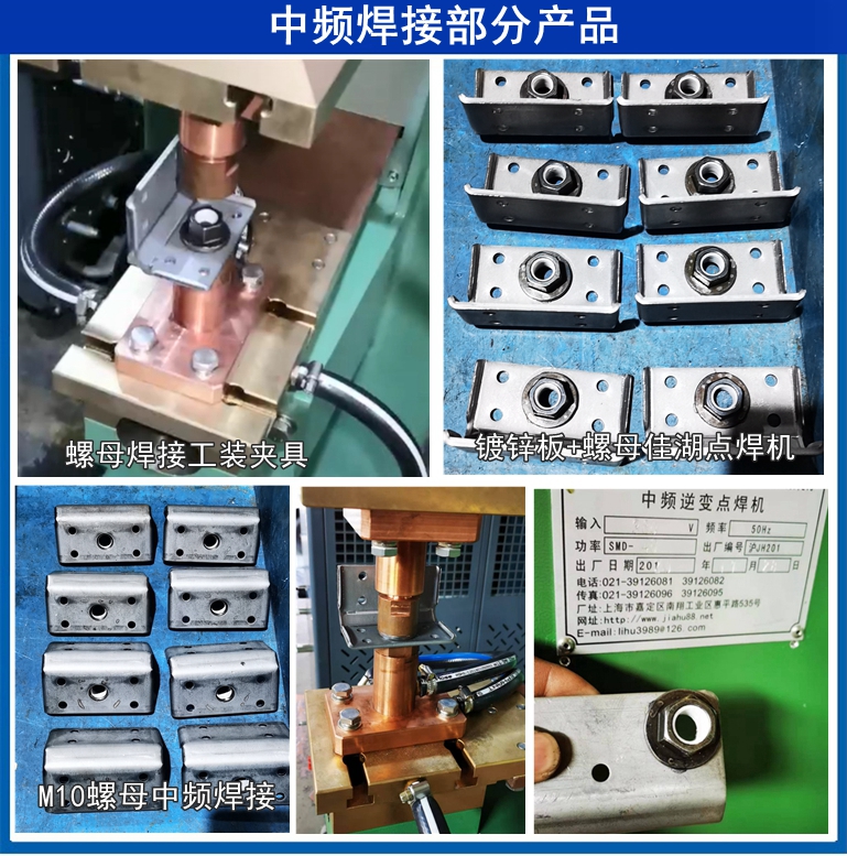 中頻點凸焊機應用于:低碳鋼板、不銹鋼板、鍍鋅板、鋁板、冷軋板、螺母焊接、螺栓焊接、電熱水器,空調背板,不銹鋼帶,電梯門板,線材的點焊、多點凸焊,以及高低壓電氣行業銅線的電阻釬焊、點焊,銀點和銅板的釬焊、復合銀點焊接等。