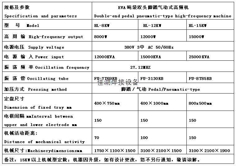 EVA噸袋高周波熔接機的用途:主要用于含有30%以上PVC軟硬膠玩具文具行業類的高周波熔接如:帳篷、汽車腳墊、EVA噸袋熱合機、PVC噸袋焊接機、PVC網眼噸袋熔接機。