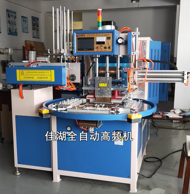2、自動轉盤高頻機加強型機架,PLC控制、人機界面觸摸屏控制,方便設置參數;