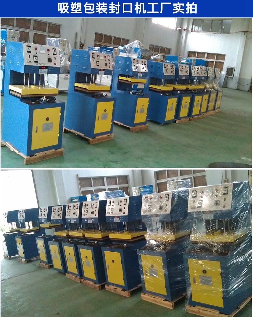 吸塑封口機:本機采用氣動元件驅動壓板工作,用可調控電發熱原理完成PVC、PP、PE 等塑料吸塑成型片材料與紙板封合,適用于各種玩具、雨刮器、文具、文教用品、電池、食品、日用品、小型工具的吸塑封口包裝。